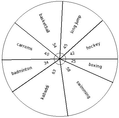 The following table gives the data regarding the favourite sport of 414 students of a school. Find the pie chart sector angle for "long jump"