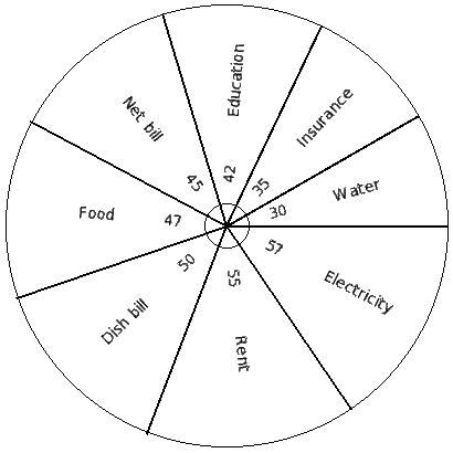 A man earns Rs 1890 per month. His expenditure during a month is as follows. Find the pie chart sector angle for "Net bill"