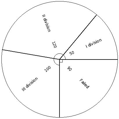 The results declared by a school was as under. Identify the table for the given pie diagram.