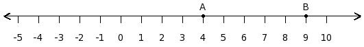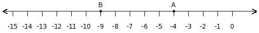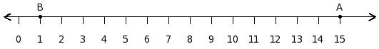 Find the difference between the values of numbers at point A and B