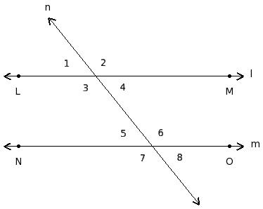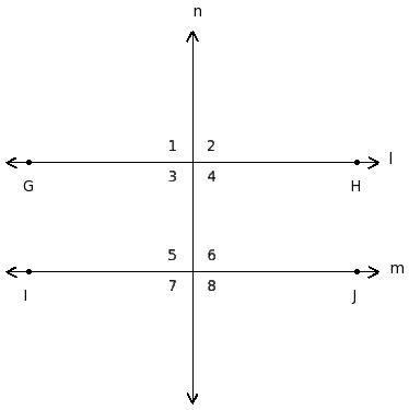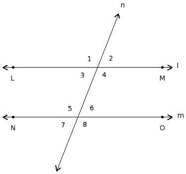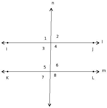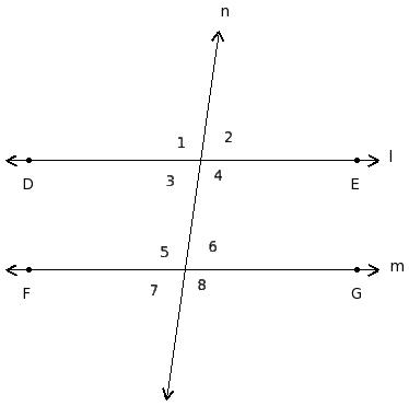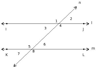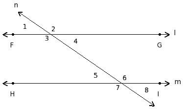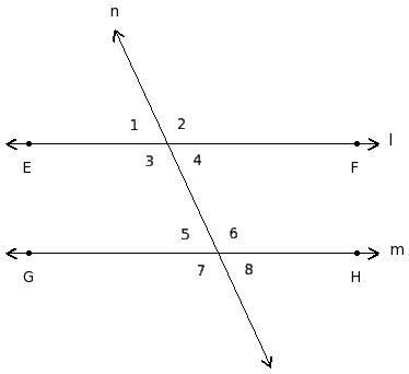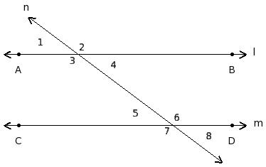 ∠1 , ∠5 ; ∠2 , ∠6 ; ∠3 , ∠7 ; ∠4 , ∠8
