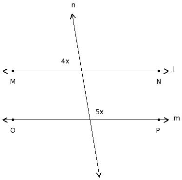 In the given figure l ∥ m. Find the value of 'x'