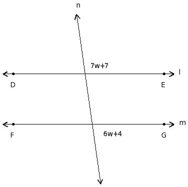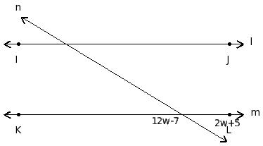 In the given figure l ∥ m. Find the value of 'w'