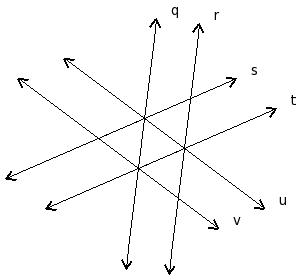 In the given figure, q , r , s , t , u , v are lines in a plane. By looking at the figure, which of the following are true?