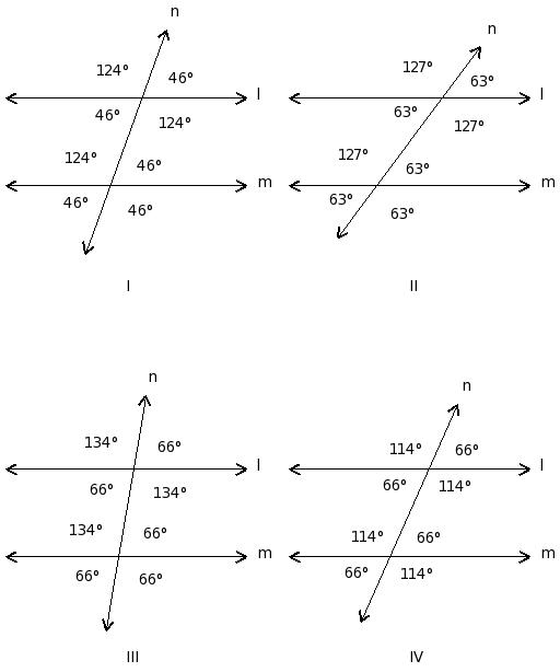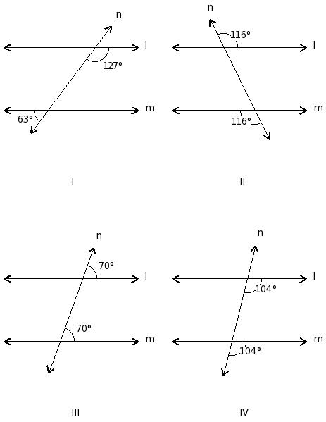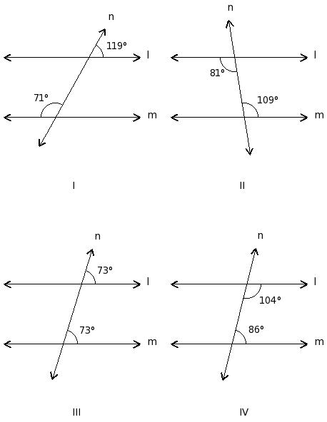 In which of the figures given bellow, l ∦ m(not parallel)?