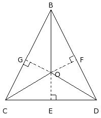 In the given figure, in △BCD, 'O' is a point inside the triangle. OE ⟂ CD, OF ⟂ BD and OG ⟂ BC. Then