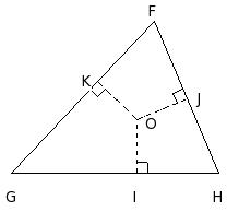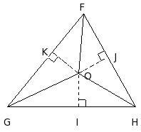 In the given figure, in △FGH, 'O' is a point inside the triangle. OI ⟂ GH, OJ ⟂ FH and OK ⟂ FG. Then