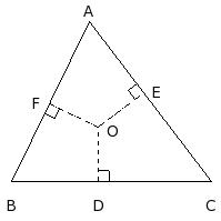 In the given figure, in △ABC, 'O' is a point inside the triangle. OD ⟂ BC, OE ⟂ AC and OF ⟂ AB. Then