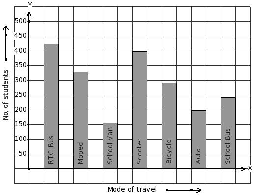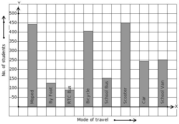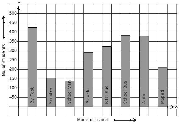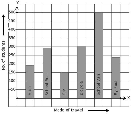Students of a certain locality use different modes of travel to school as given below. Find the mode of travel that has minimum students.