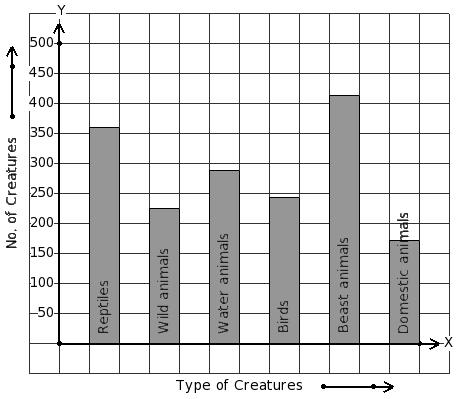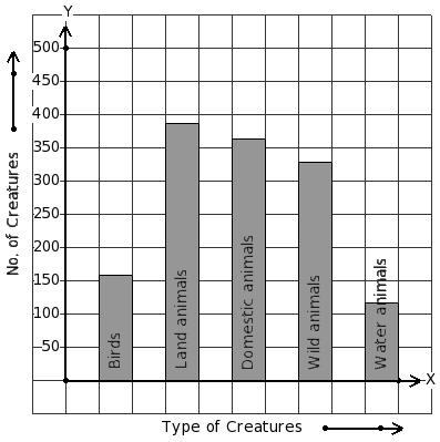 There are 1701 creatures in a zoo as shown in the bar graph. Identify the table for the given bar diagram.