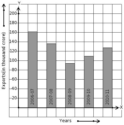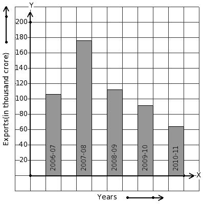 The following bar graph shows the export earnings of a country (in thousand crore) during five years. Find the year that has maximum export earnings.