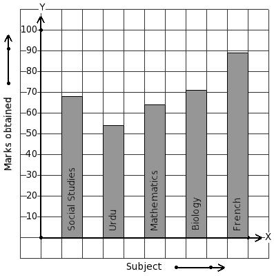The marks obtained by Akbar in his annual exam are shown below. Find the subject that has minimum score.
