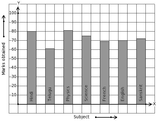 The marks obtained by Karthik in his annual exam are shown below. Find the subject that has 80 score.