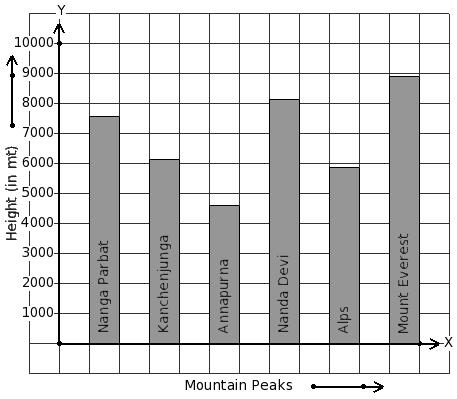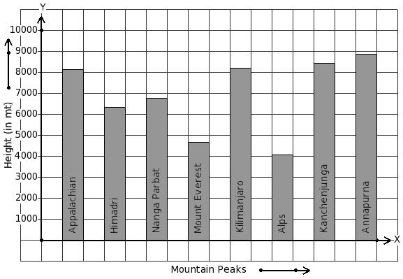 Given below is the column-graph showing heights of some mountain peaks. Find the mountain that has minimum height.