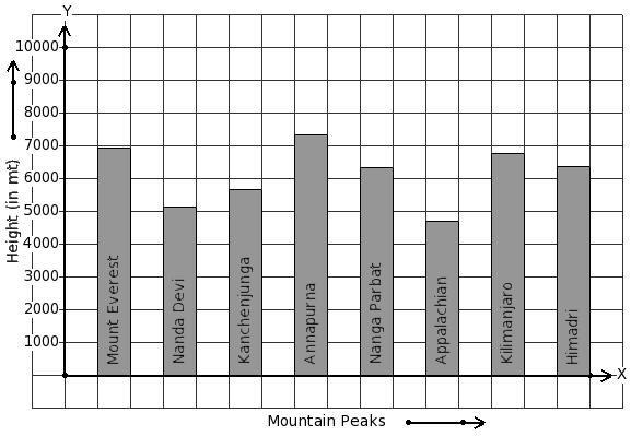Given below is the column-graph showing heights of some mountain peaks. Find the mountain that has maximum height.
