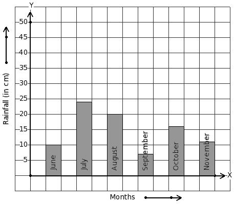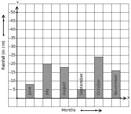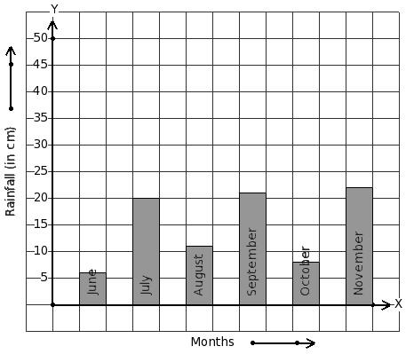 Read the given column-graph. Find the month that has 6 cm rainfall.