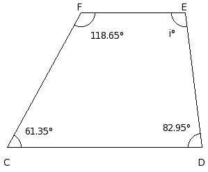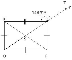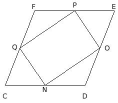 CDEF is a rhombus. N, O, P and Q are mid-points of sides CD, DE, EF and FC. Find ∠OPQ