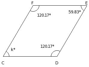 Two adjacent angles of a parallelogram CDEF are in the ratio 2 : 8. Find the measure of each of its angles.