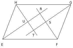 In the given figure, EFGH is a parallelogram. The bisector of the angles E, F, G & H intersect at R, S, T & U to form a quadrilateral. Find ∠URS