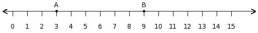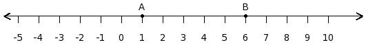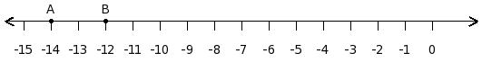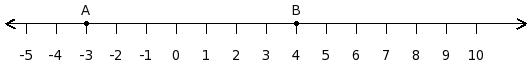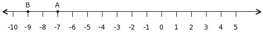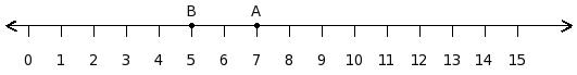 Find the difference between the values of numbers at point A and B
