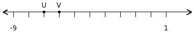 Find the sum of the two numbers at the points labelled with letters U and V