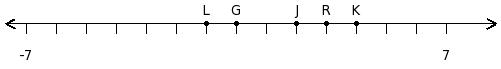 Find the difference of the two numbers at the points labelled with letters J and K