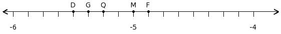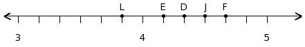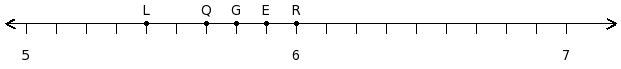 Find the rational number at the point labelled with letter F