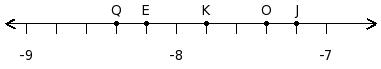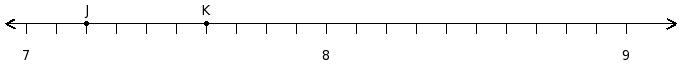 Find the difference of the rational numbers at the points labelled with letters J and K