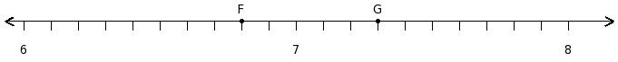 Find the sum of the rational numbers at the points labelled with letters F and G