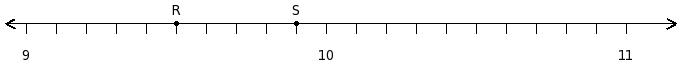 Find the difference of the rational numbers at the points labelled with letters R and S