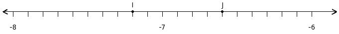 Find the difference of the rational numbers at the points labelled with letters I and J