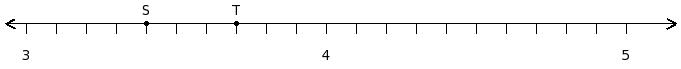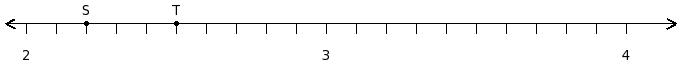 Find the sum of the rational numbers at the points labelled with letters S and T