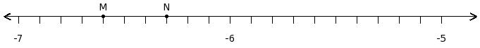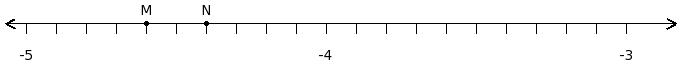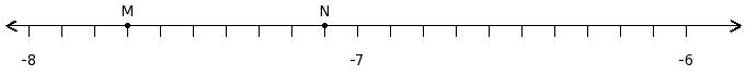 Find the difference of the rational numbers at the points labelled with letters M and N