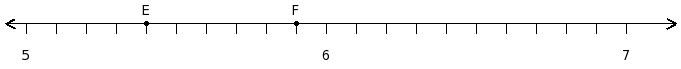 Find the product of the rational numbers at the points labelled with letters E and F