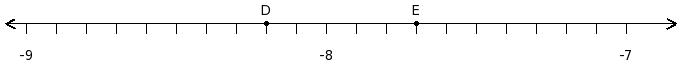 Find the product of the rational numbers at the points labelled with letters D and E