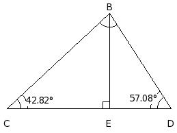 In the given figure , if EB ⟂ CD and ∠BCE = 42.82°, find ∠DBE