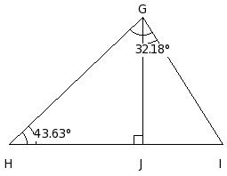 In the given figure , if JG ⟂ HI and ∠GHJ = 43.63°, find ∠JIG
