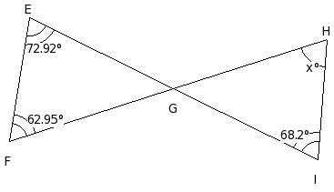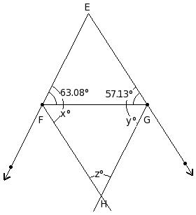 In the given figure, △EFG in which ∠F = 63.08° and ∠G = 57.13°. EH and FG bisects each other. Find the value of z
