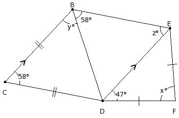 In the given figure, find the values of x ,y and z.