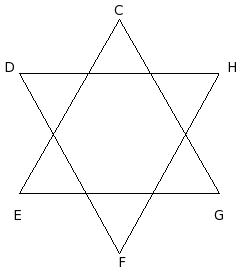 In the given two equilateral triangles, find ∠C + ∠E + ∠G + ∠D + ∠F + ∠H .