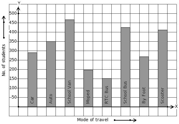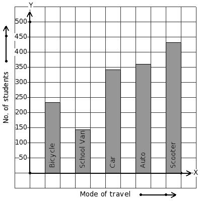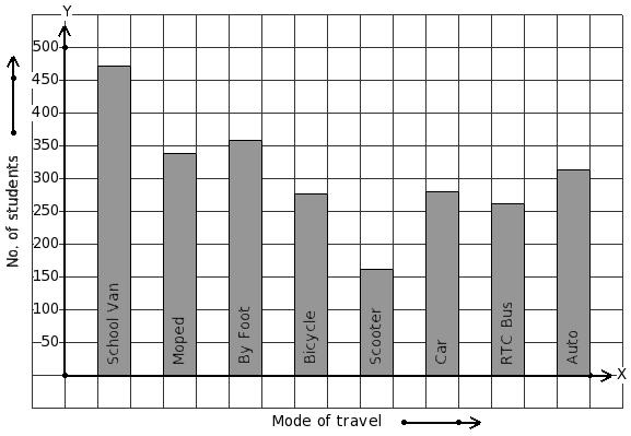 Students of a certain locality use different modes of travel to school as given below. Find the mode of travel that has minimum students.