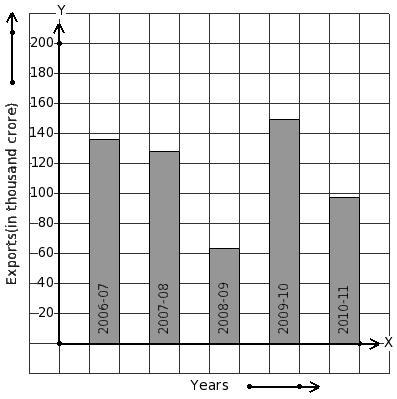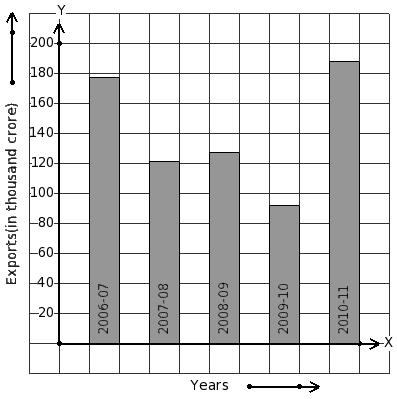 The following bar graph shows the export earnings of a country (in thousand crore) during five years. Find the year that has 177 thousand crore export earnings.