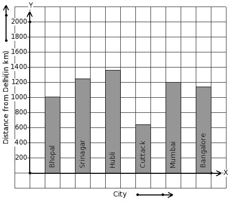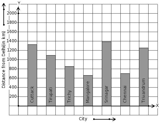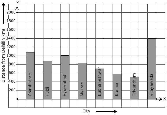 The air distance of some cities from Delhi (in km) are given below. Find the city that has maximum distance.
