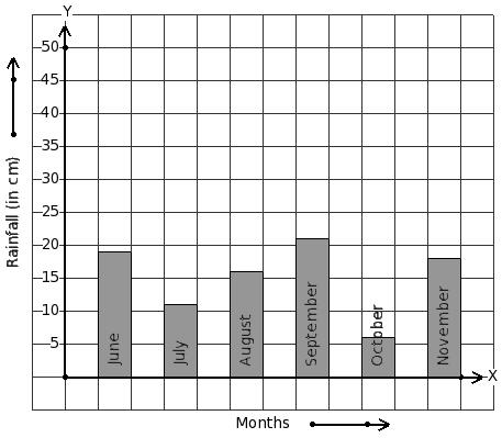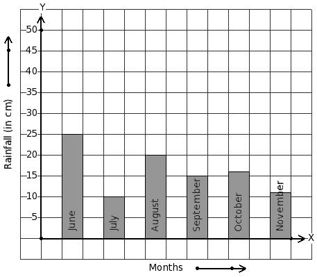 Read the given column-graph. Find the month that has 6 cm rainfall.