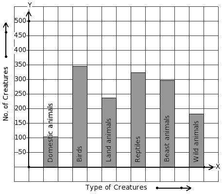There are 1908 creatures in a zoo as shown in the bar graph. Identify the table for the given bar diagram.