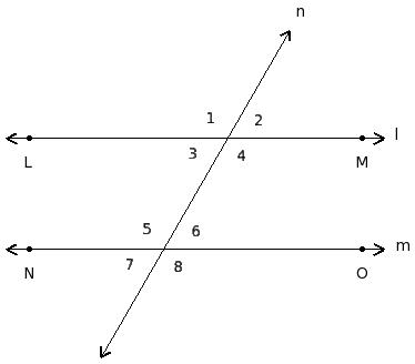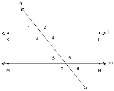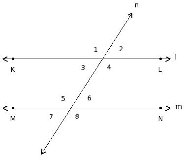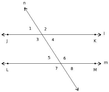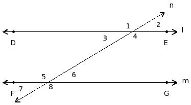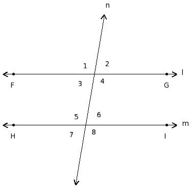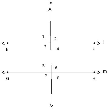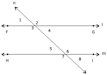 ∠1 , ∠5 ; ∠2 , ∠6 ; ∠3 , ∠7 ; ∠4 , ∠8