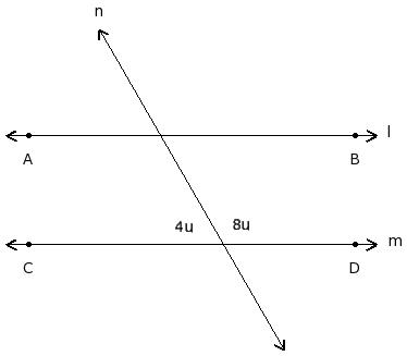 In the given figure l ∥ m. Find the value of 'u'