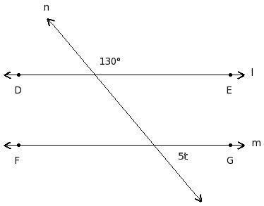 In the given figure l ∥ m. Find the value of 't'