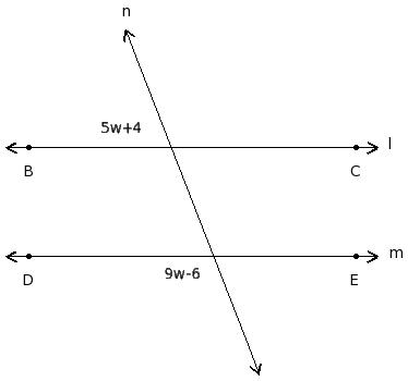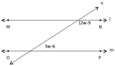 In the given figure l ∥ m. Find the value of 'w'