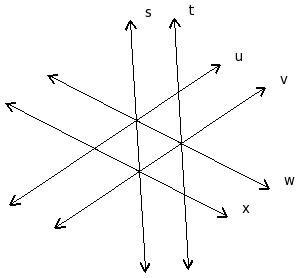 In the given figure, s , t , u , v , w , x are lines in a plane. By looking at the figure, which of the following are true?